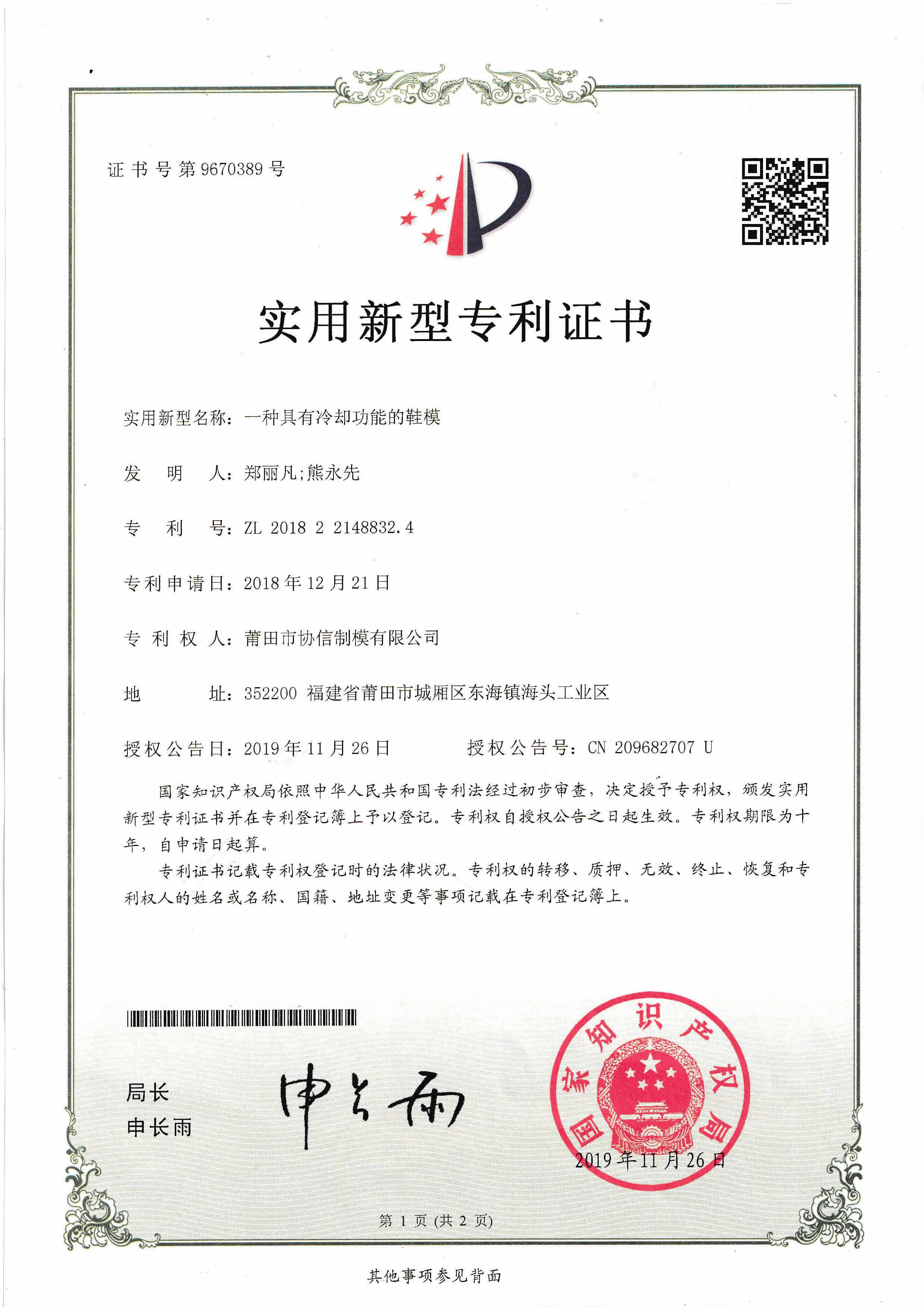 莆田市協信制模有限公司成立于2003年9月10日,由香港協信香港協信國際貿易有限公司投資組建,注冊資金120萬美元,是一家專業(yè)從事業(yè)鞋類模具設計、制造與銷售企業(yè),在行業(yè)內享有盛譽。主要產品:RB、EVA、PVC、TPU、TR、TPR、ETPU、射出EVA等。公司月產能模具900多套,所有產品均采用國際質量標準,各個生產環(huán)節(jié)貫徹完善品質檢查體系。
